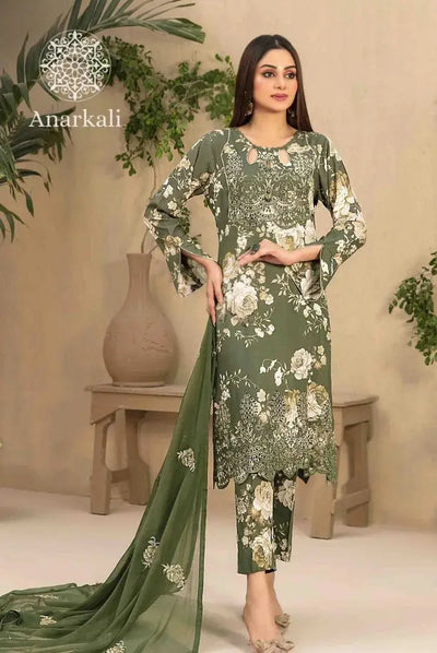 Avizeh Embroidered 3 Piece Stitched Suit (Light Green)