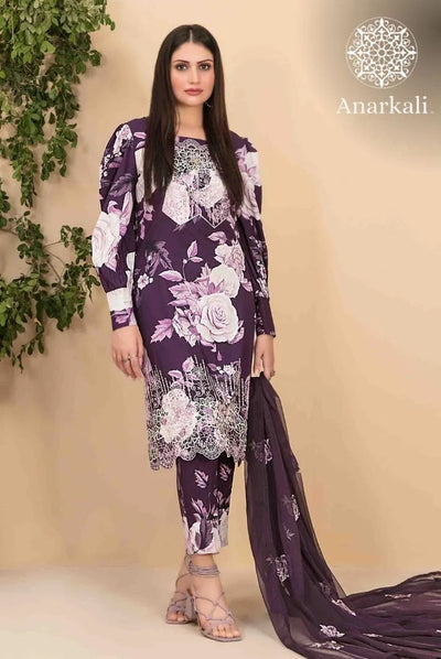 Avizeh Embroidered 3 Piece Stitched Suit (Royal Purple)