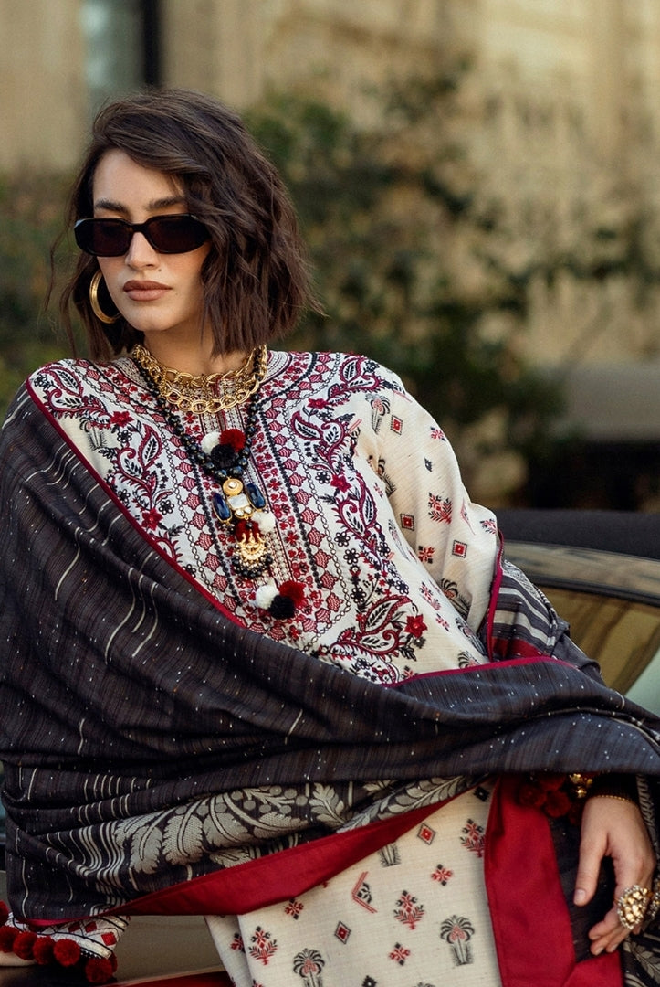 Description : Dreamy Escape, showcases a luxurious jacquard viscose shirt paired with a beautifully crafted viscose jacquard shawl, exuding elegance and sophistication. Adorned with handmade wool thread tassels at the neckline and sleeves, this ensemble adds a unique artisanal touch. Disclaimer : – Product color & design may slightly vary like laces etc . As these were not provided by the Brands along with the suits. – Don’t use any type of bleach or stain removing chemicals – Dry clean recommended – Iron the clothes on a moderate temperature – Select the size that most closely matches your body measurements. – Measurements may vary by style. – All local orders will be dispatched within 3-5 days. – All international orders will be dispatched within 7-10 days. – Product stitching is different from the attached images. – Refunds or exchanges available